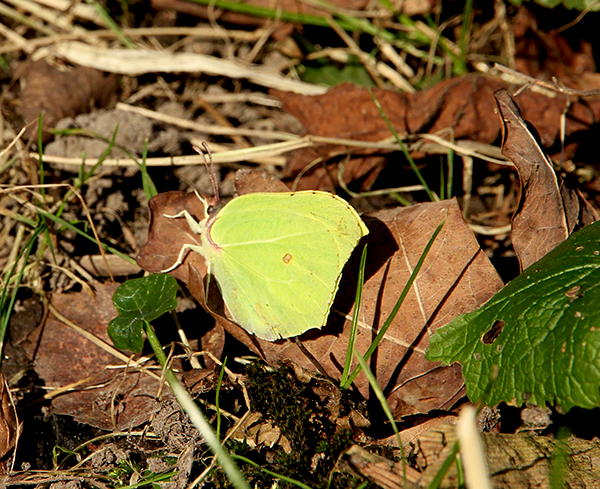 Zitronenfalter sind die ersten Schmetterlinge im Jahr. Sie überwintern bei uns und sind flugbereit, sobald es nur warm genug ist. Aber im Februar? Ich glaube, so früh habe ich in Hamburg bisher noch keinen gesehen.