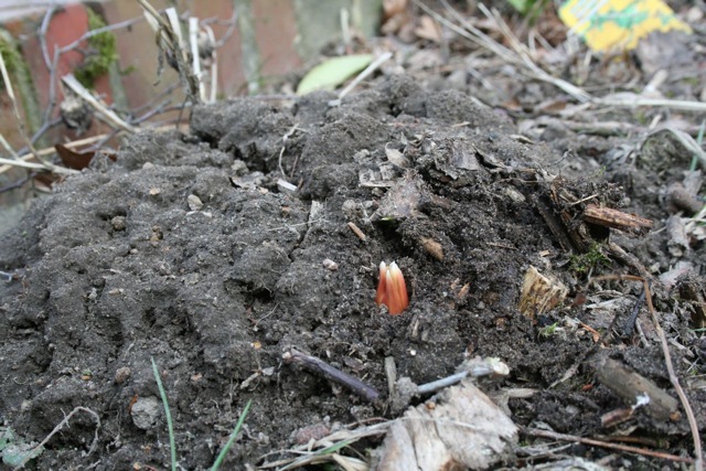 Wer einmal die Zwiebel einer Kaiserkrone in der Hand hatte, kennt den verheerenden Gestank. Ganze Kofferräume sind von Kaiserkronen schon unbrauchbar geworden, wuah! Ich habe vergangenen Herbst einige gekauft, weil die Stinker ja gegen Maulwürfe und Wühlmäuse helfen sollen. Ha, ha, kann ich nur sagen. Mein Maulwurf ist jedenfalls voll auf den Geschmack gekommen. Ein Glück, dass ich die Blume wenigstens schön finde!
