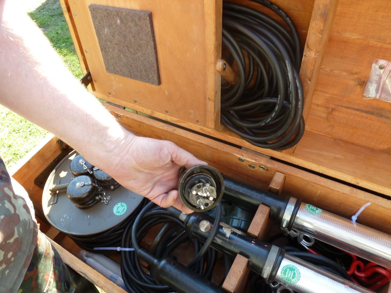 In jedes Zelt kommt eine dreifache Verteilerdose mit drei Lampen.