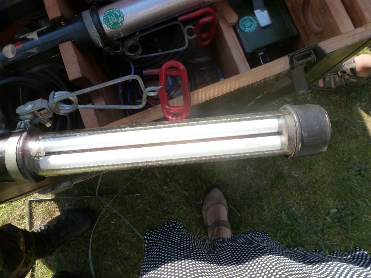 Hier sind die Kästen mit der Beleuchtung. Wir haben nachgeguckt: von 1965. Aber frisch TÜV-geprüft.