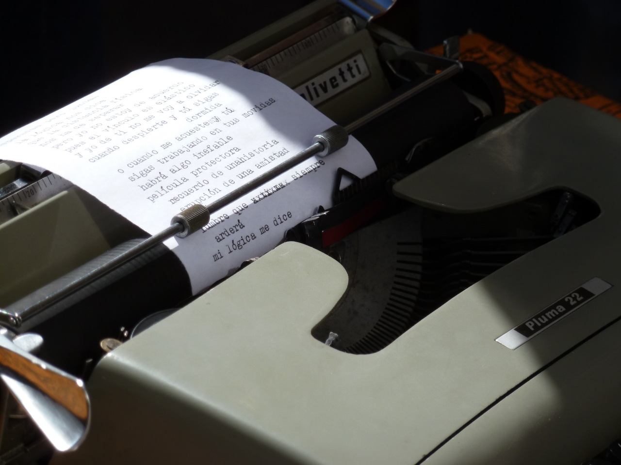 Einen besonderen Dienst bietet dieser Mann: Er schreibt gegen eine Themenvorgabe Gedichte zum Mitnehmen auf einer alten Schreibmaschine.