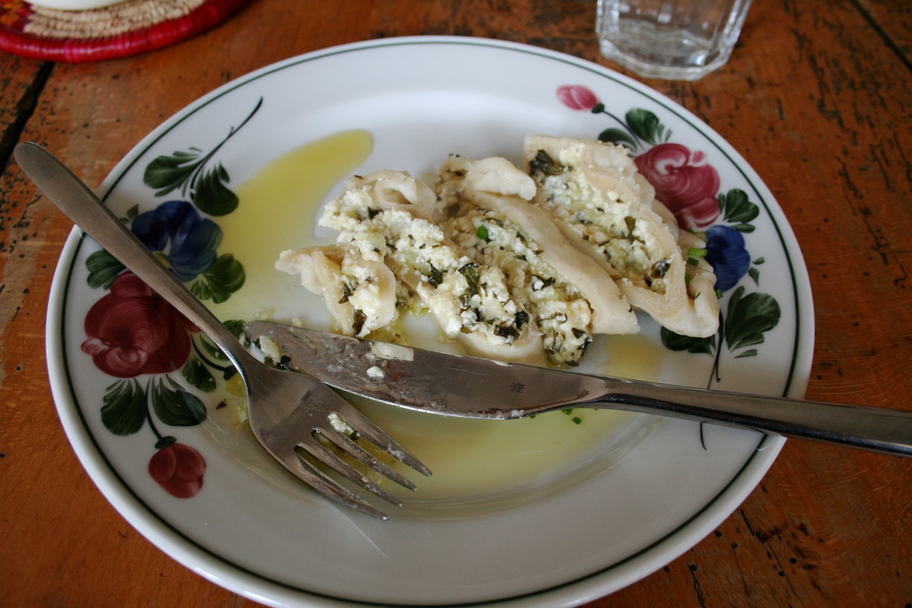 Ach ja: Nudeln sind hier keine Pasta, sondern gefüllte Teigtaschen, ähnlich vielleicht Maultaschen oder Ravioli. Eine Besonderheit ist übrigens die Kärntner Nudelminze. Ich glaube, dass ich etwas ähnliches in meinem Garten habe, denn der Stengel ist braun. Für eine genauere Erklärung bitte hier entlang.