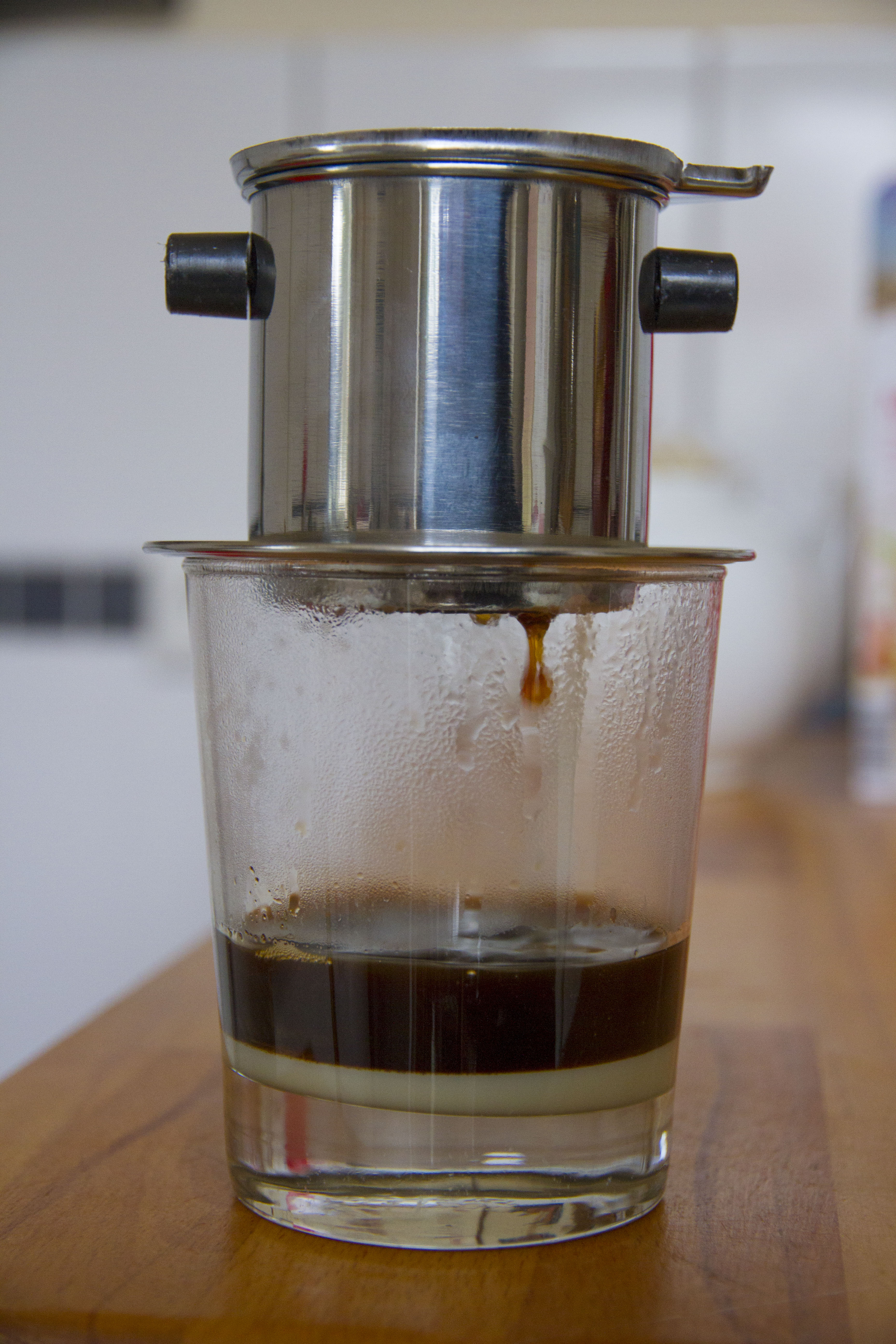 Für so ein Glas vietnamesischen Kaffee lasse ich jeden anderen stehen. Obwohl ich hinterher jedesmal Herzgalopp habe. Aber dieser Kaffee (Marke Trung Nguyên) ist eine Offenbarung. Wie man ihn macht, steht hier oder (akribischer und mit Eis) hier.