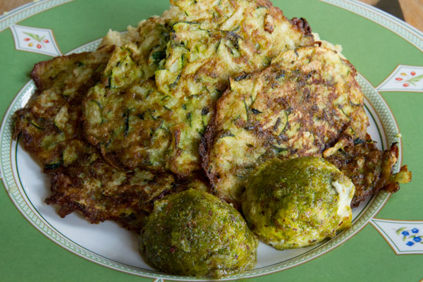 Zucchinipuffer mit Pistazien-Ziegenkäsebällchen