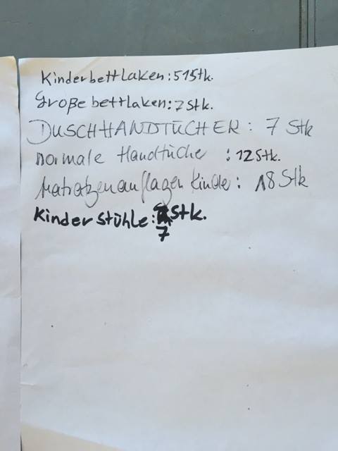 Alles, was auf der Liste steht, ist noch in Ohlstedt. Heute morgen wurden 25 gebrauchte Betten weitergegeben an die Flüchtlingsunterkunft in den Messehallen. Dort gab es nach Auskunft von Herrn Dietrich (s. letzter Beitrag) nicht ein Kinderbett. Angeblich gibt es dort auch keinen Sielanschluss – und wenn das stimmt, gibt es immerhin alle Gründe, sich kräftig zu wundern.